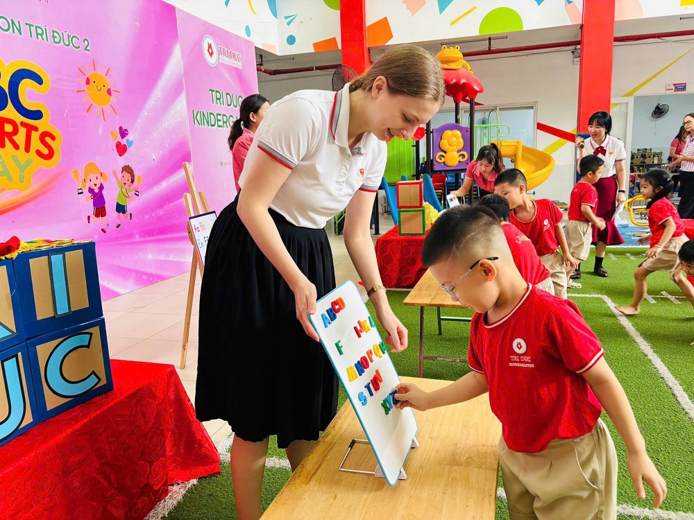 Đồng thời tích hợp nhận diện bảng chữ cái vào hoạt động thể thao, phát triển tinh thần đồng đội và sự phối hợp nhịp nhàng giữa các bạn với nhau.