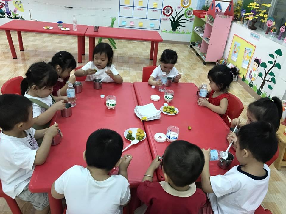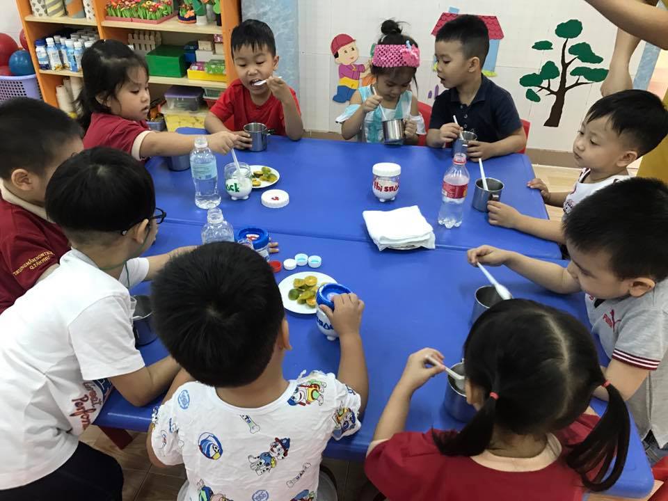 Qua hoạt động thú vị này, các cô giáo trường Mầm non Trí Đức 2 giúp các bé hiểu được cơ thể muốn khoẻ mạnh cần phải ăn uống đủ chất và bổ sung các loại nước hoa quả chứa nhiều vitamin.