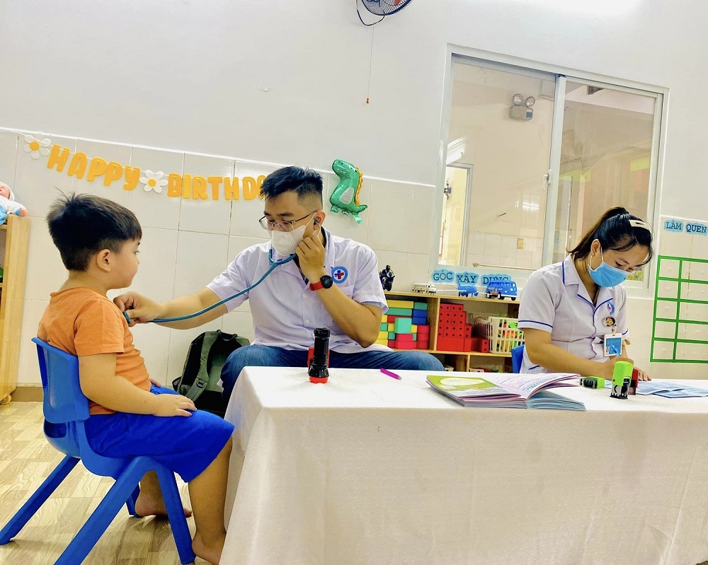 Ngoài hoạt động giảng dạy, nhà trường còn quan tâm, chăm sóc sức khỏe cho các bé qua các bữa ăn giàu dinh dưỡng, khám sức khỏe. Vừa qua, nhà trường đã tiếp tục tổ chức khám sức khỏe định kỳ cho các bé.