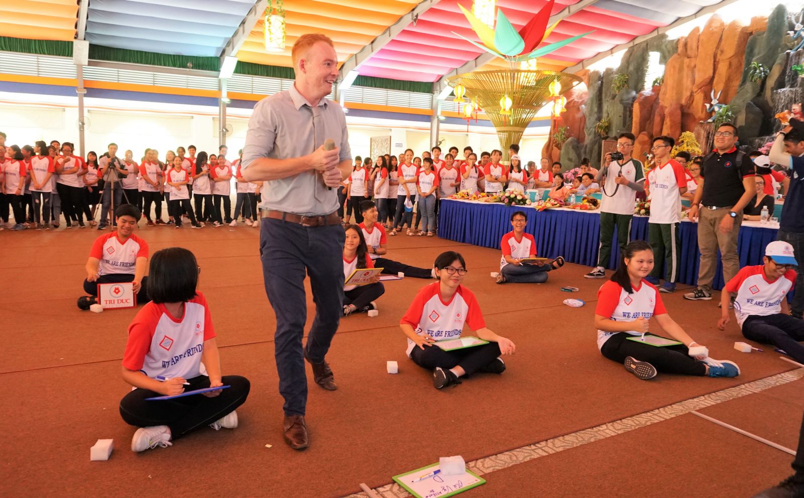 Học sinh thi “Rung chuông vàng” bằng tiếng Anh dưới sự dẫn dắt của giáo viên người nước ngoài.