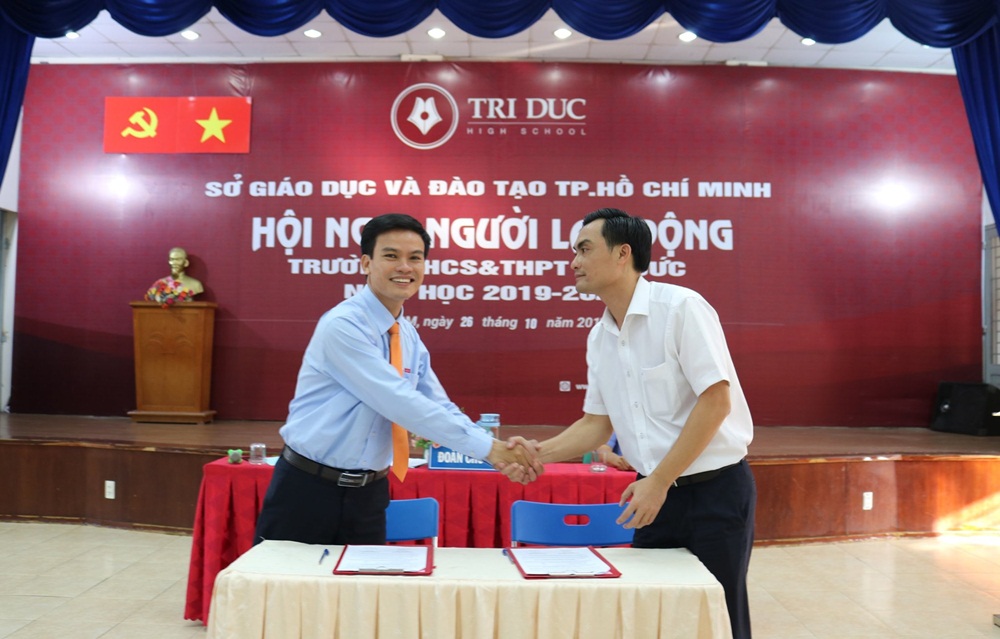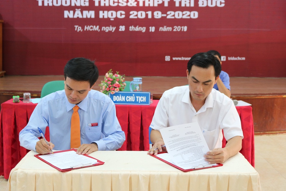 Vừa qua (26/10/2019), trường THCS & THPT Trí Đức đã tổ chức Hội nghị Đại biểu người lao động năm học 2019 - 2020. Thông qua Hội nghị nhằm đánh giá kết quả thực hiện nhiệm vụ năm học 2018 – 2019; Bàn phương hướng nhiệm vụ năm học 2019 - 2020 và ký kết thỏa ước lao động tập thể năm 2019-2020.