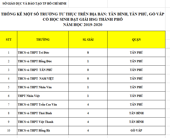 Nhà trường xin được chúc mừng các em học sinh đạt giải học sinh giỏi cấp thành phố năm học 2019-2020: