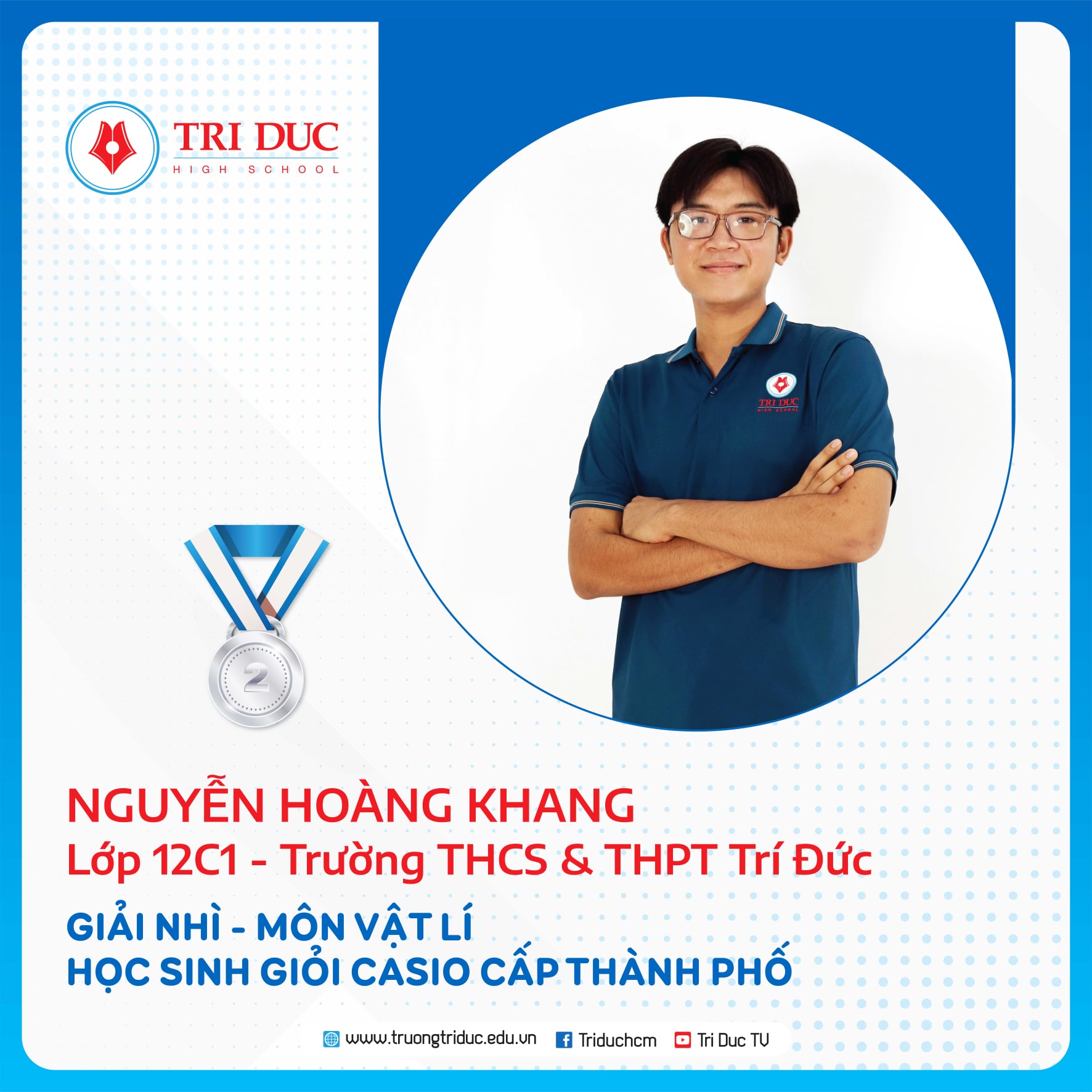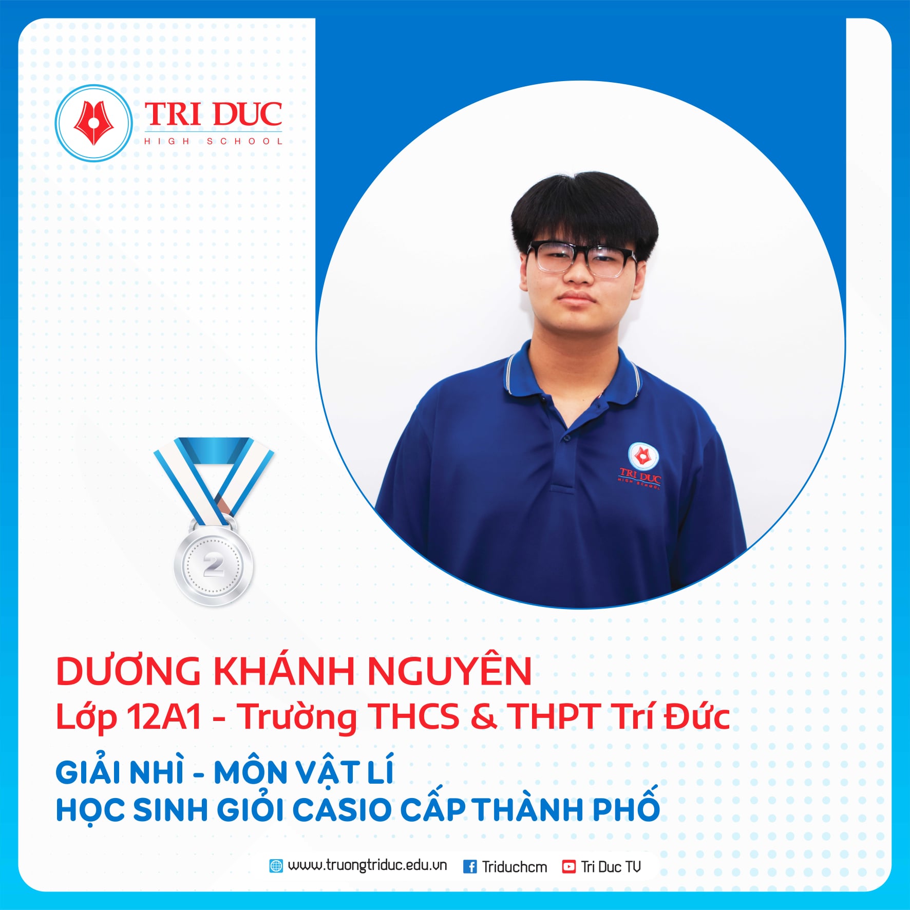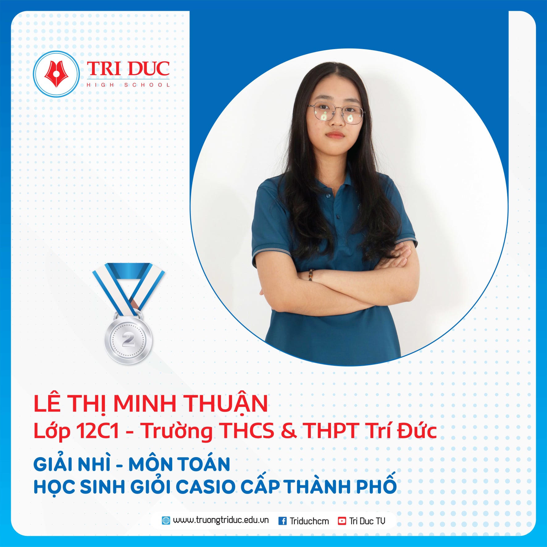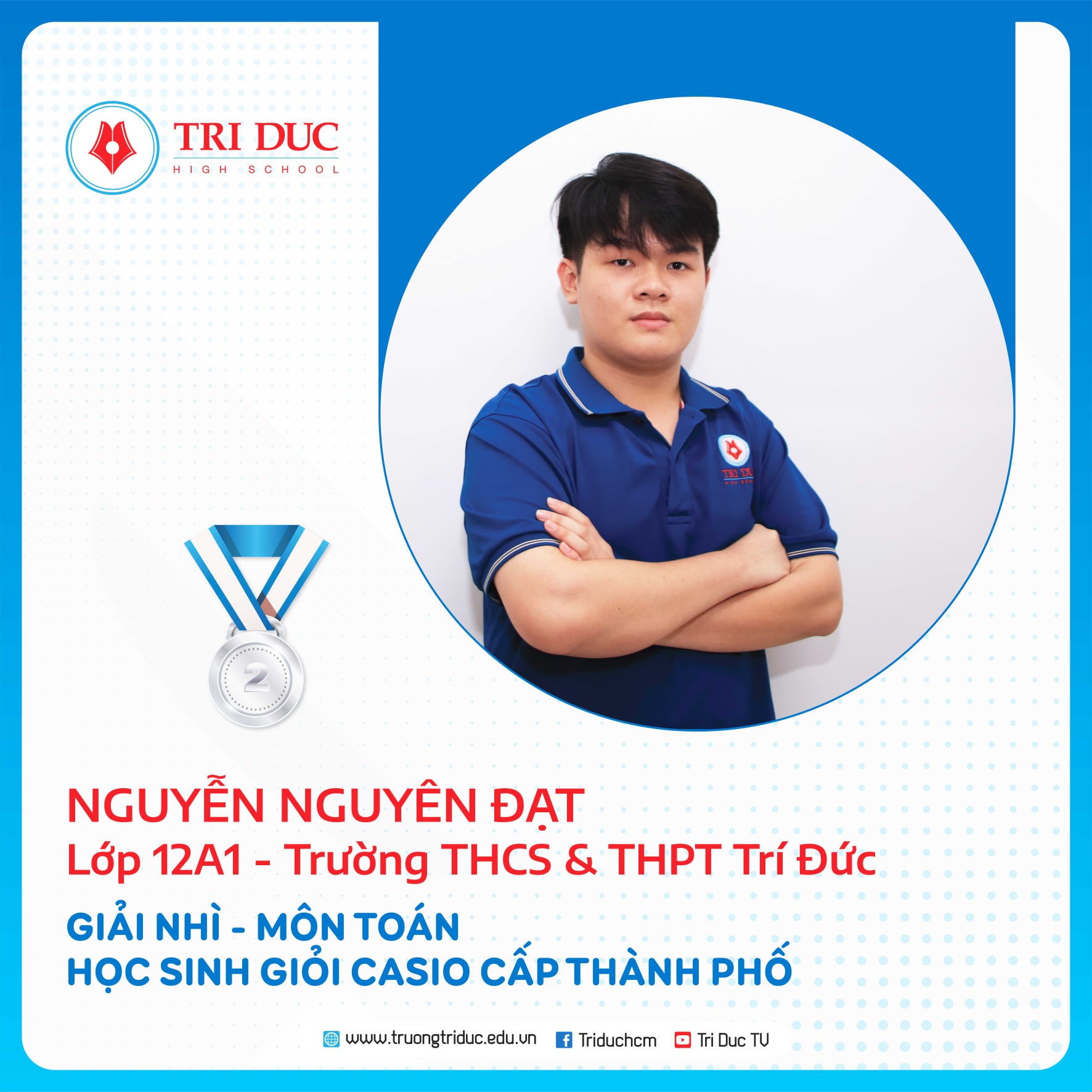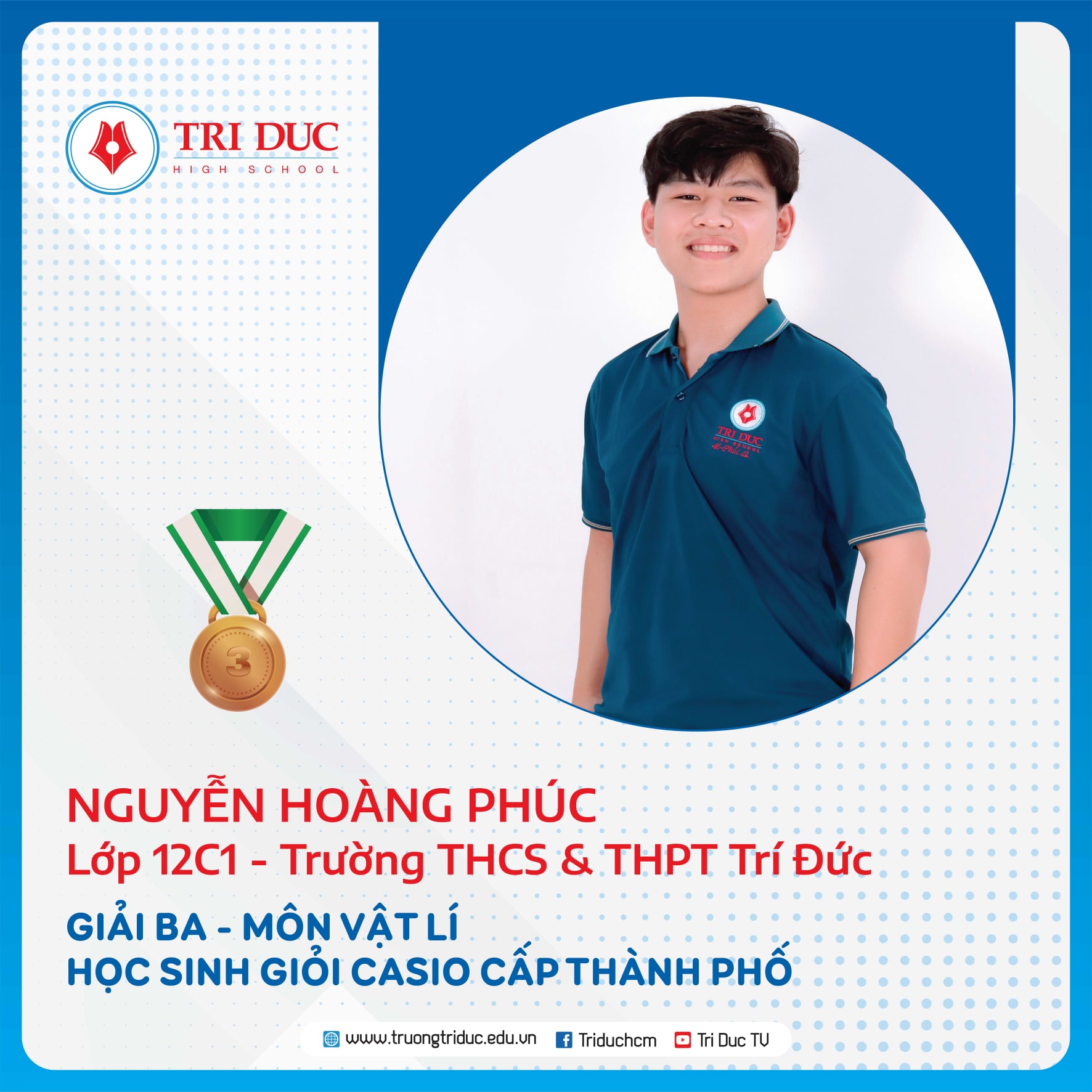 Đây là cuộc thi dành cho HỌC SINH GIỎI Khối 12 của các Ttrường THPT trên địa bàn TP. Hồ Chí Minh với hàng nghìn thí sinh tham dự. Đội tuyển HỌC SINH GIỎI Khối 12 của Trường Trí Đức đã xuất sắc giành được 11 GIẢI CAO tại cuộc thi này, trong đó: 1 GIẢI NHẤT, 7 GIẢI NHÌ, 3 GIẢI BA.
