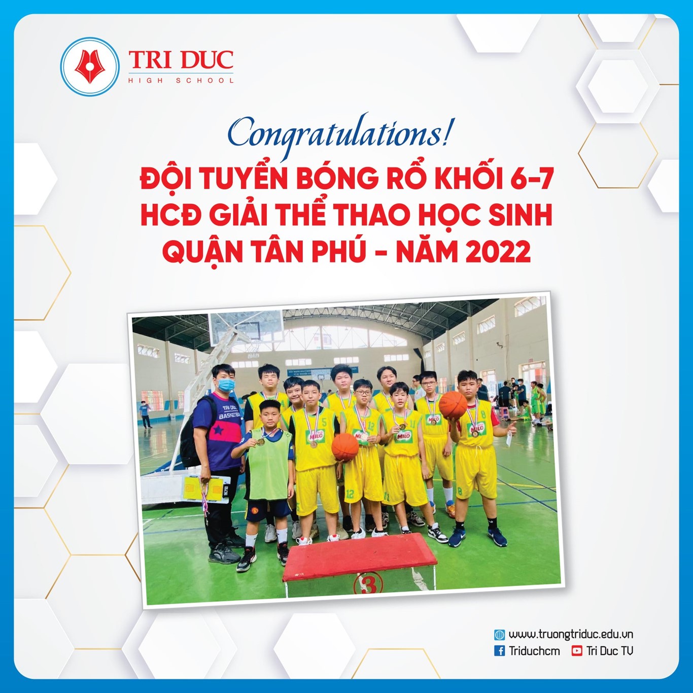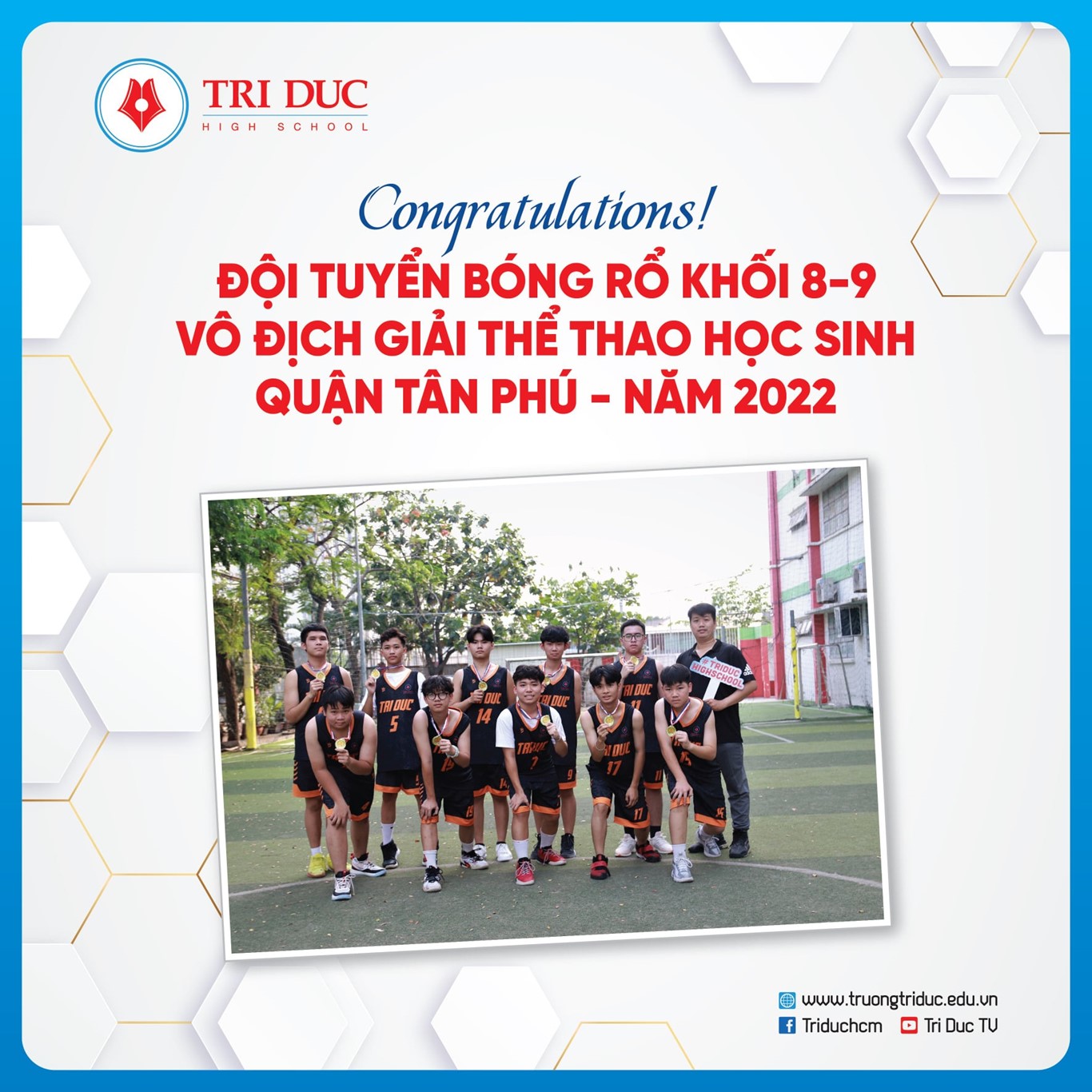 Sau thành công của môn Bơi lội tại Giải thể thao học sinh Q. Tân Phú năm 2022, trường chúng ta tiếp tục đón nhận tin vui từ các đội tuyển bóng rổ Trí Đức khi giành được nhiều giải xuất sắc, cụ thể: