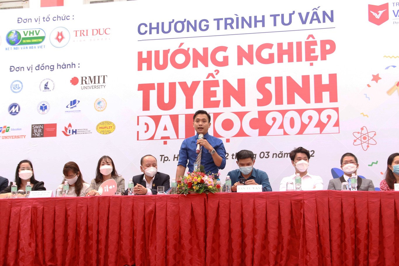 Chương trình tư vấn có sự tham gia của nhiều trường Đại học Top đầu tại TP. Hồ Chí Minh theo yêu cầu và nguyện vọng của các em học sinh khối 12 của trường như: ĐH Bách khoa, ĐH Khoa Học Tự Nhiên, ĐH Khoa Học XH - Nhân Văn, ĐH Kinh Tế Luật, ĐH Ngân Hàng, ĐH RMIT, ĐH Công Nghiệp, ĐH Tài Chính Marketing, ĐH Công Nghệ Sài Gòn, ĐH Mở, ĐH FPT, ĐH Quốc tế Sài Gòn…