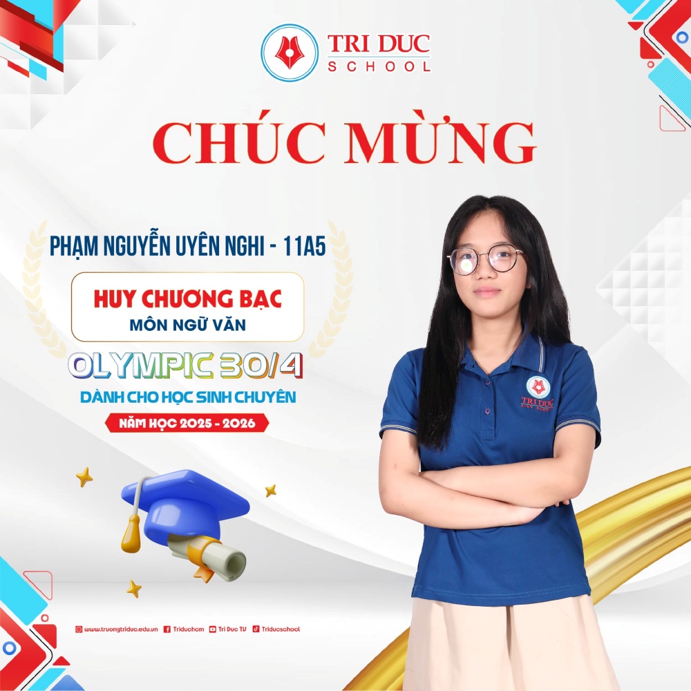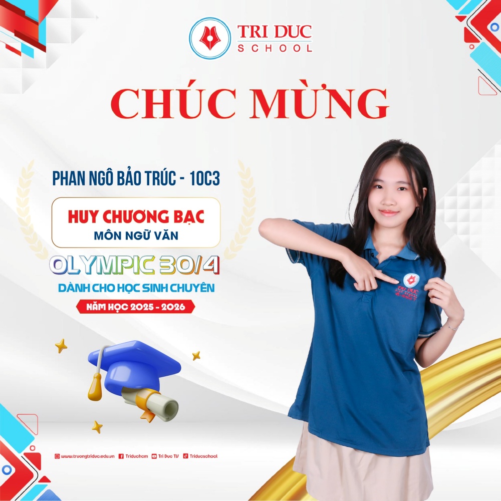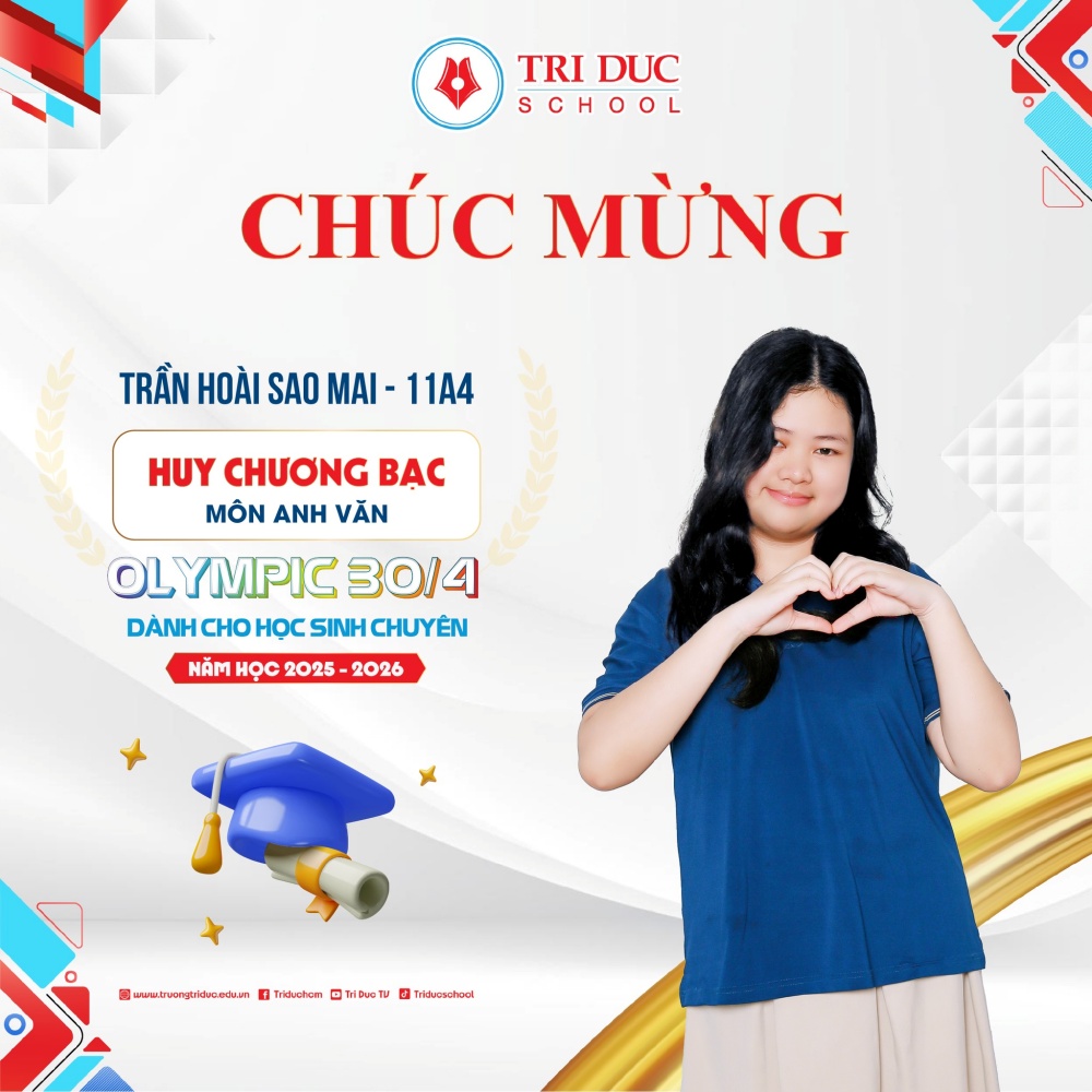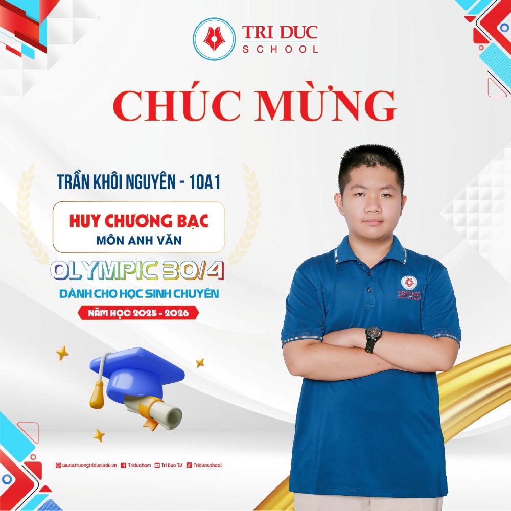Trường Tiểu học, THCS & THPT Trí Đức trân trọng chúc mừng các em học sinh đã đạt thành tích ấn tượng tại Kỳ thi Olympic 30/4 dành cho học sinh chuyên, Năm học 2025 - 2026.