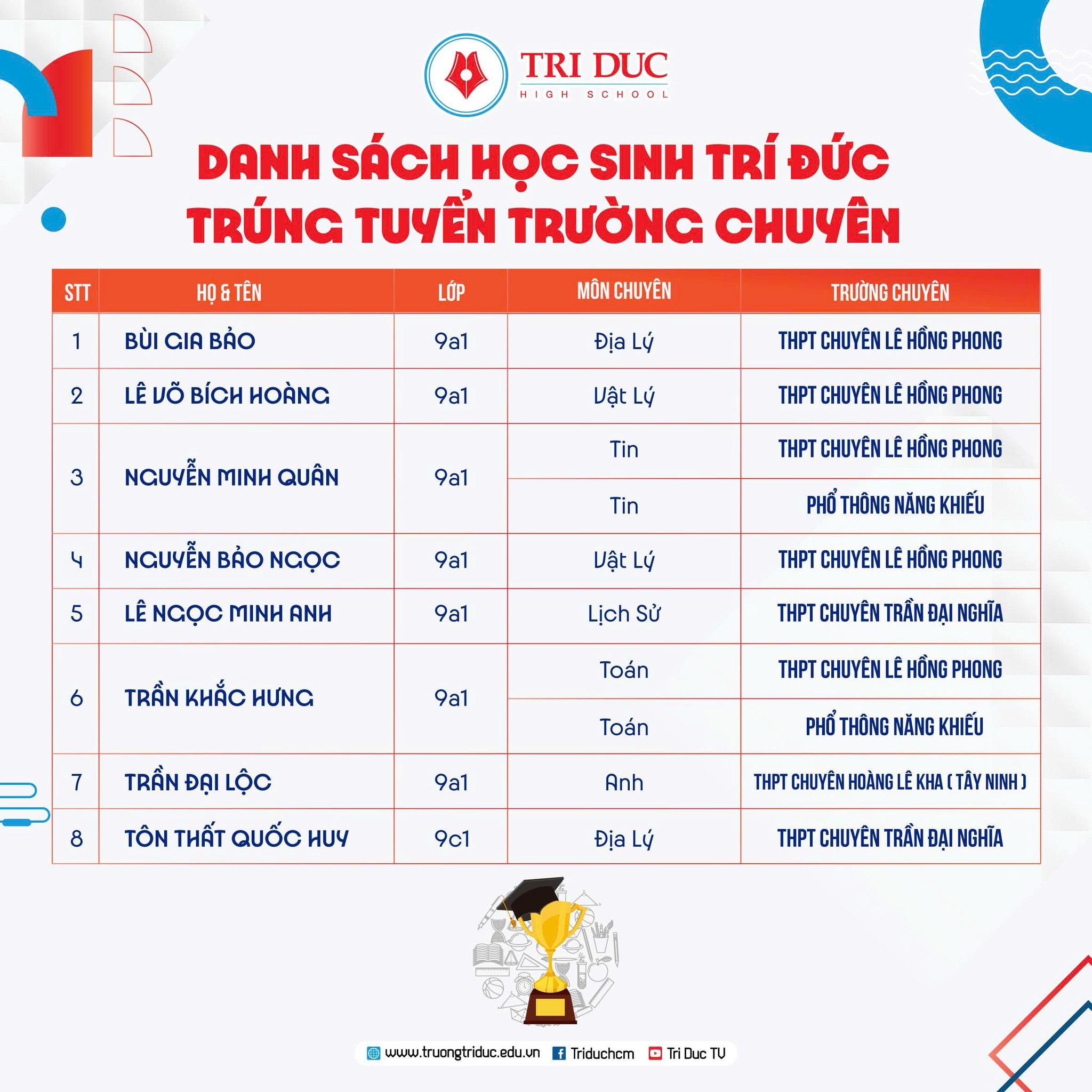 Trường THCS & THPT Trí Đức được thành lập theo Quyết định số 1210/UBND ngày 06/03/2006 của UBND Thành phố Hồ Chí Minh, trực thuộc Hệ thống Giáo Dục Trí Đức.