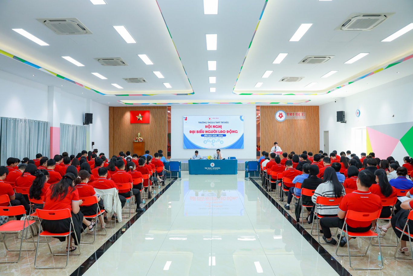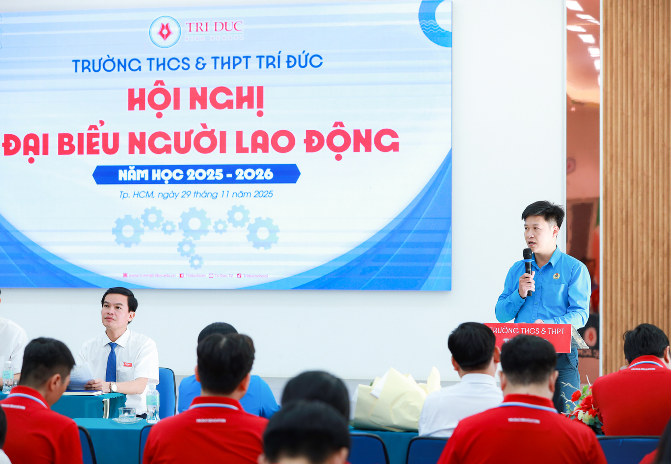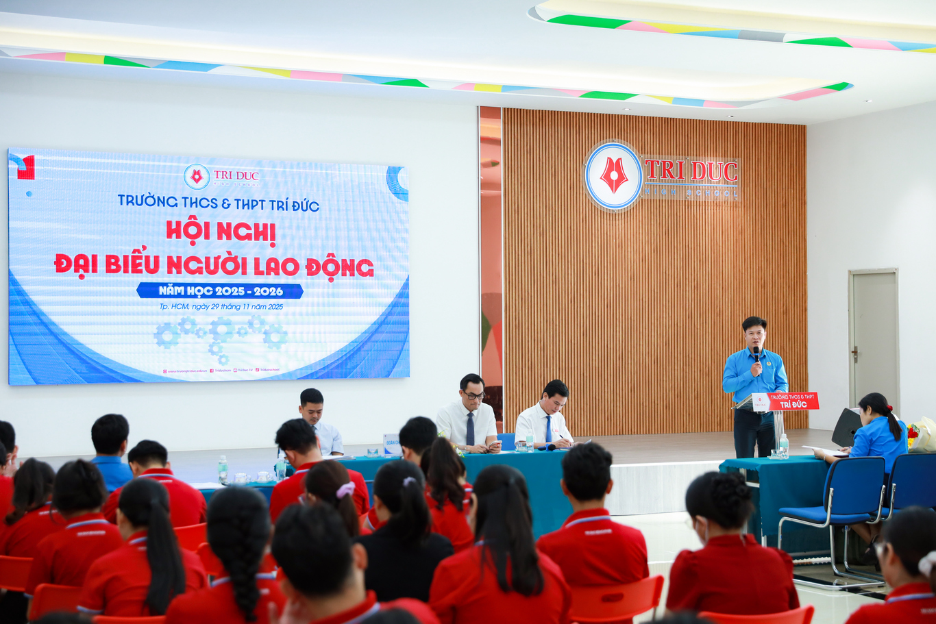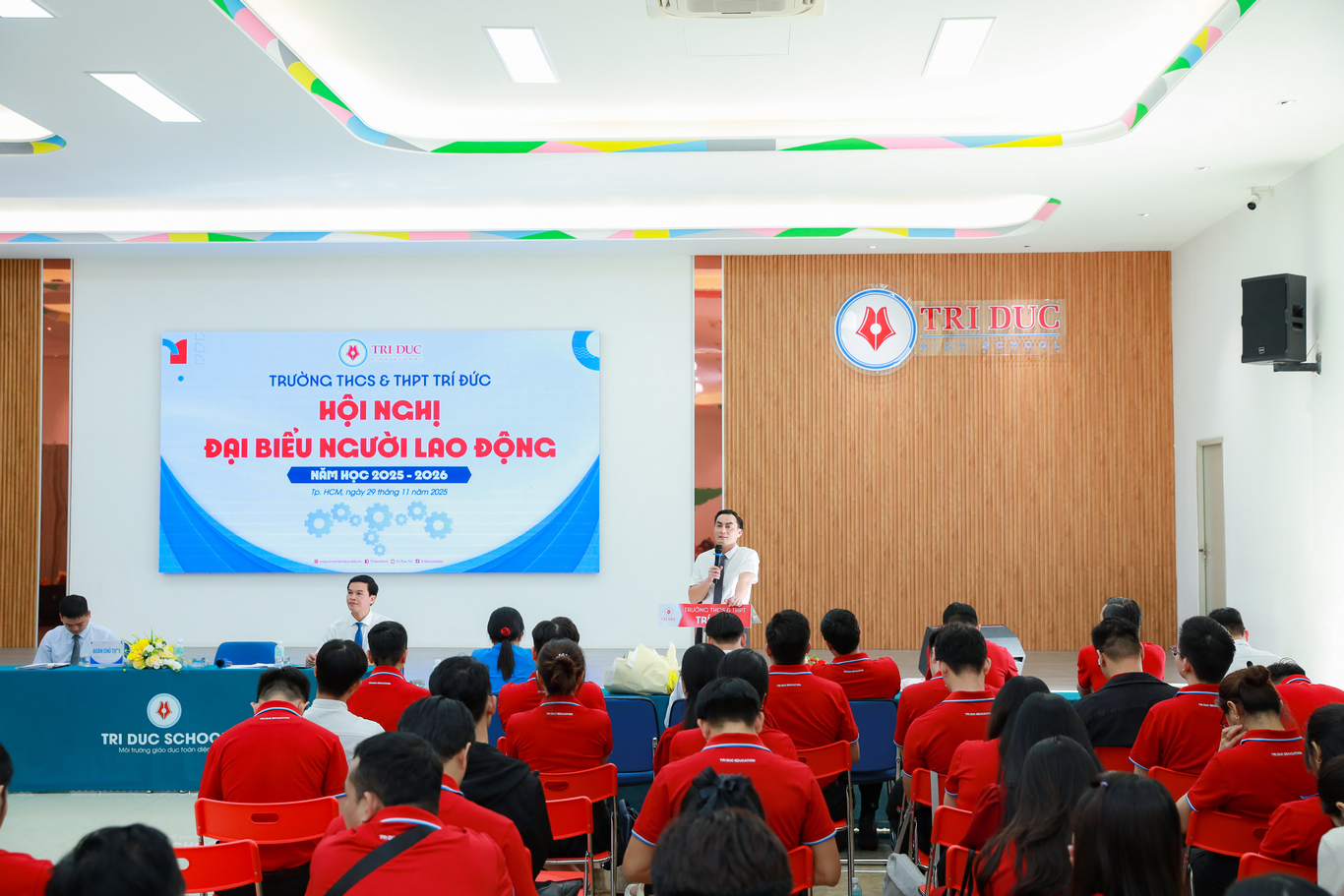 Ngày 29/11/2025, Trường THCS & THPT Trí Đức đã long trọng tổ chức Hội nghị đại biểu người lao động năm học 2025–2026. Nhà trường vinh dự đón tiếp sự hiện diện của quý lãnh đạo các cấp cùng 138 đại biểu đại diện Công đoàn viên người lao động tham dự.