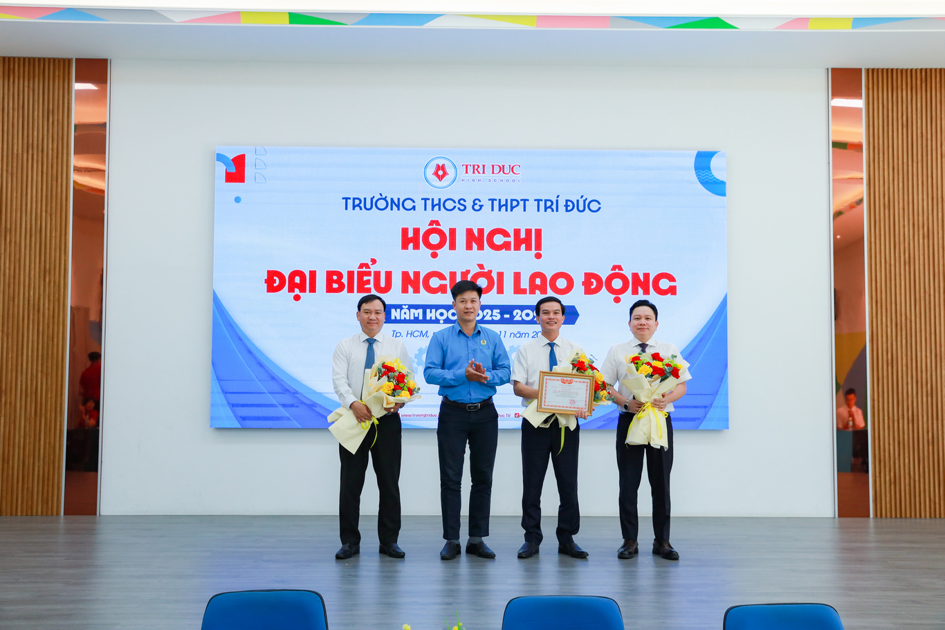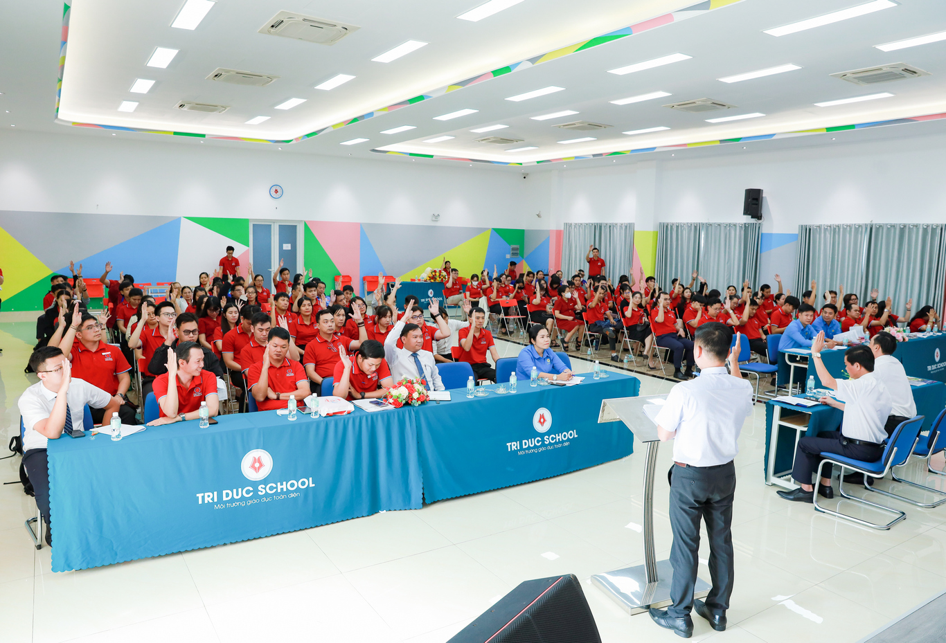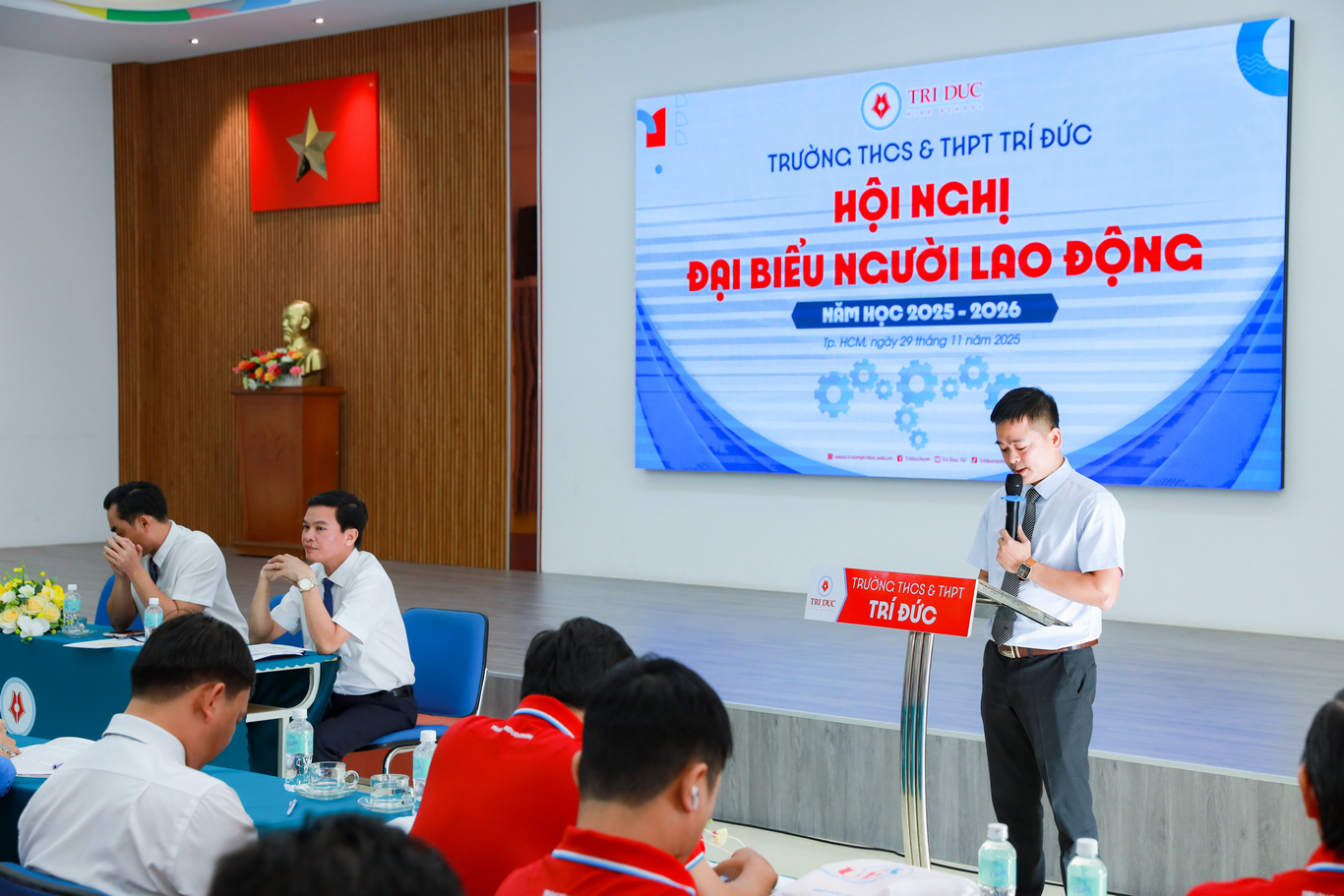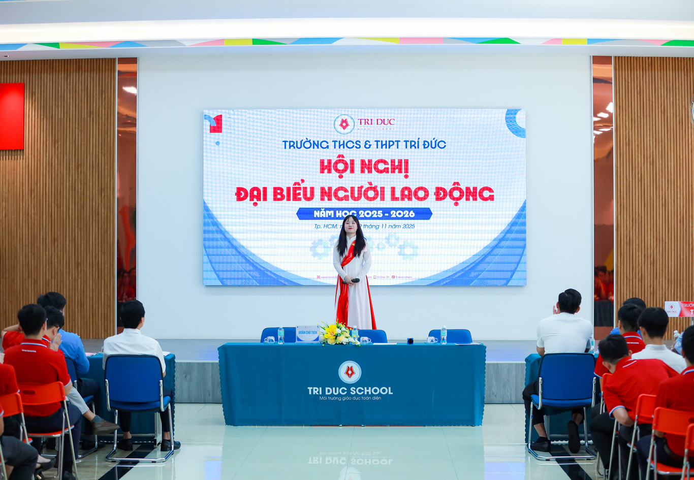 Ngày 29/11/2025, Trường THCS & THPT Trí Đức đã long trọng tổ chức Hội nghị đại biểu người lao động năm học 2025–2026. Nhà trường vinh dự đón tiếp sự hiện diện của quý lãnh đạo các cấp cùng 138 đại biểu đại diện Công đoàn viên người lao động tham dự.